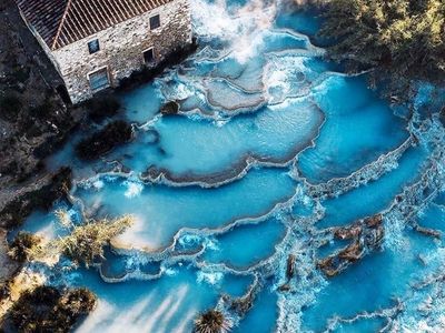 MAREMMA Magic! is a spirited and eclectic eight-day itinerary with expansive accommodations nested amongst gently rolling hills, just outside beautiful Tuscan hill towns. The experience features unforgettable experiences: a morning luxuriating in terraces of natural thermal waters (pictured); a guided visit ancient Etruscan caves and tombs, and an encounter with i butteri Italy's legendary cowboys, guided visits to a stunning kaleidoscopic sculpture garden and the best wine tour of your life. And so much more!